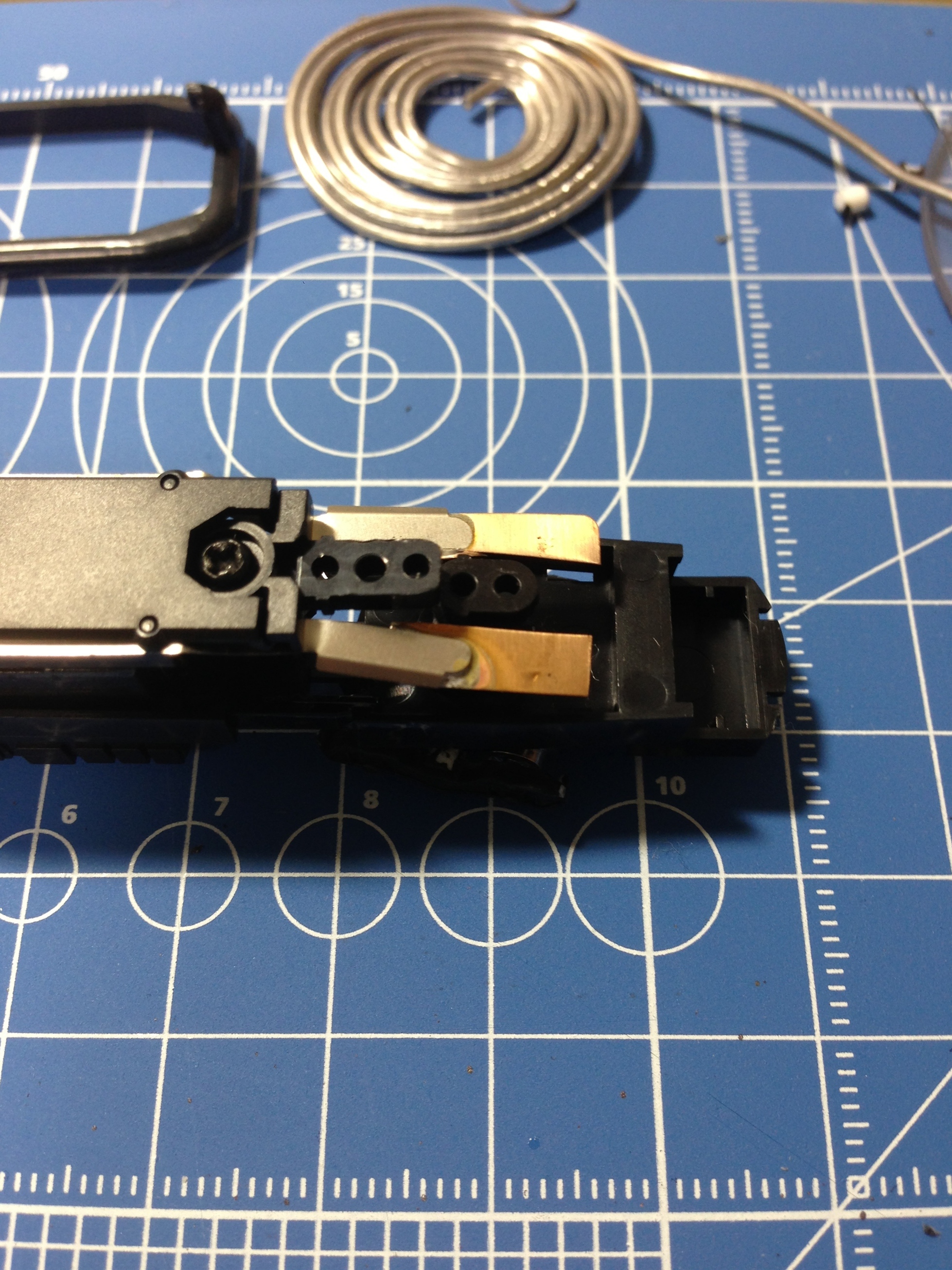 片方の台車は集電のみの台車となっているのですが、延長工事の際に集電板から離れてしまうのでGMの集電板を買ってきてハンダ付けして、そちらも延長工事を施しています。
